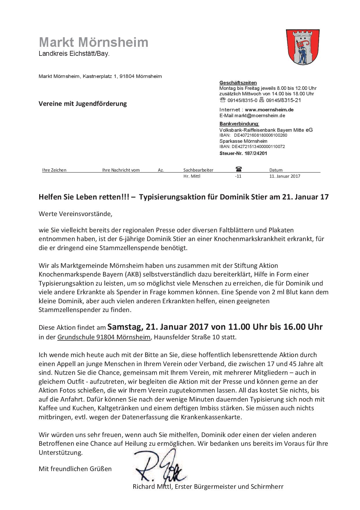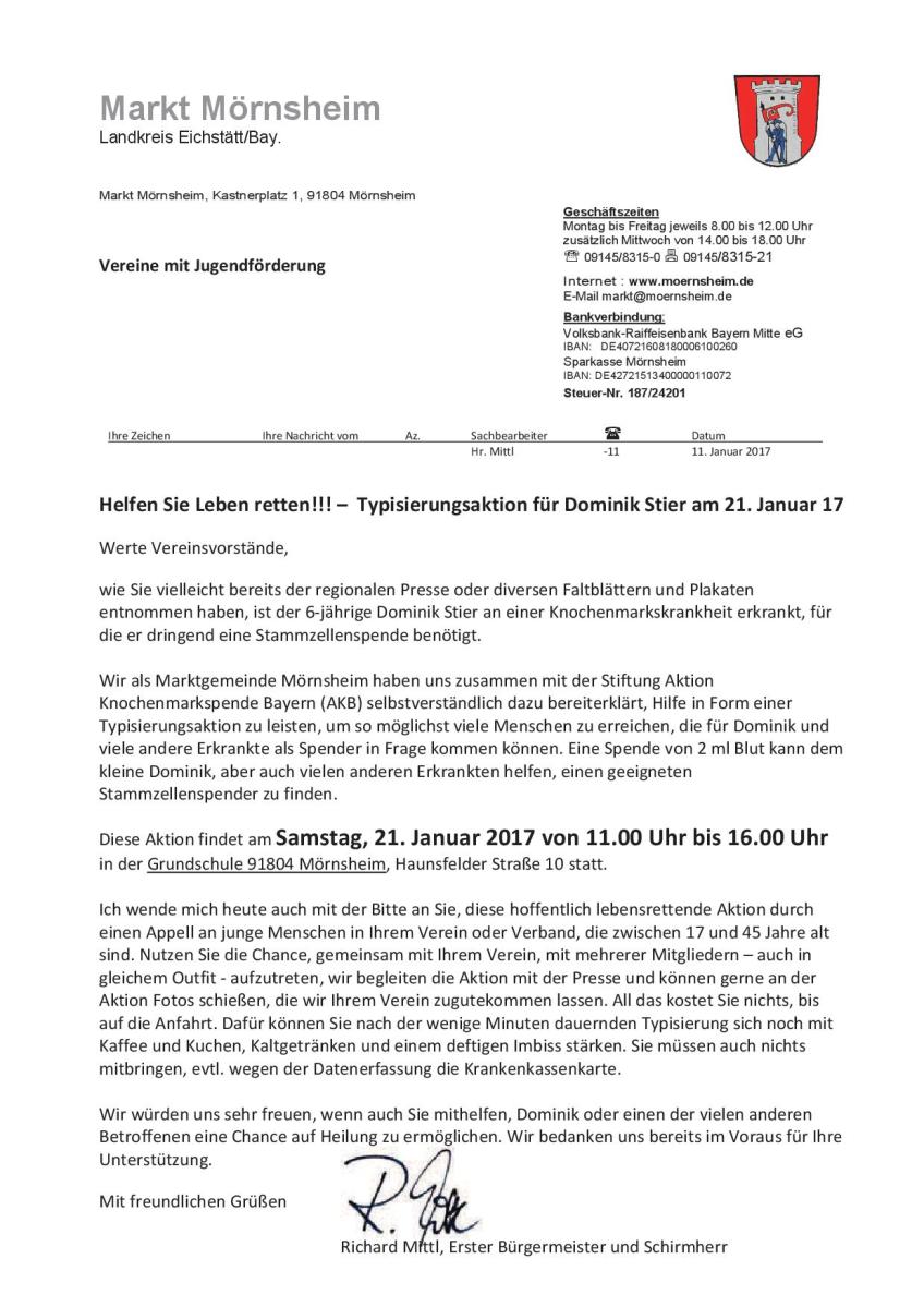 Typisierungsaktion für Dominik Stier
