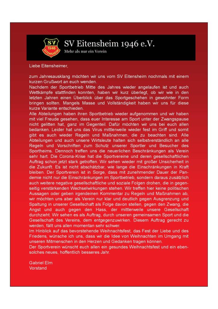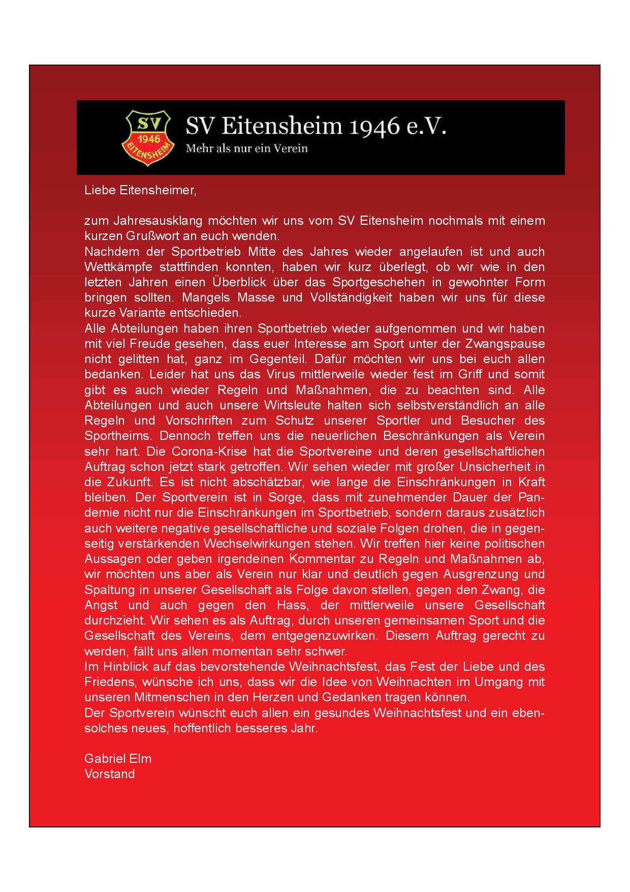 Der Sportverein wünscht euch allen ein gesegnetes Weihnachtsfest